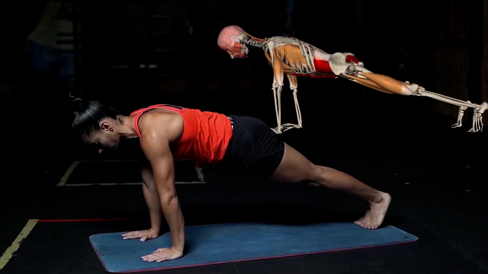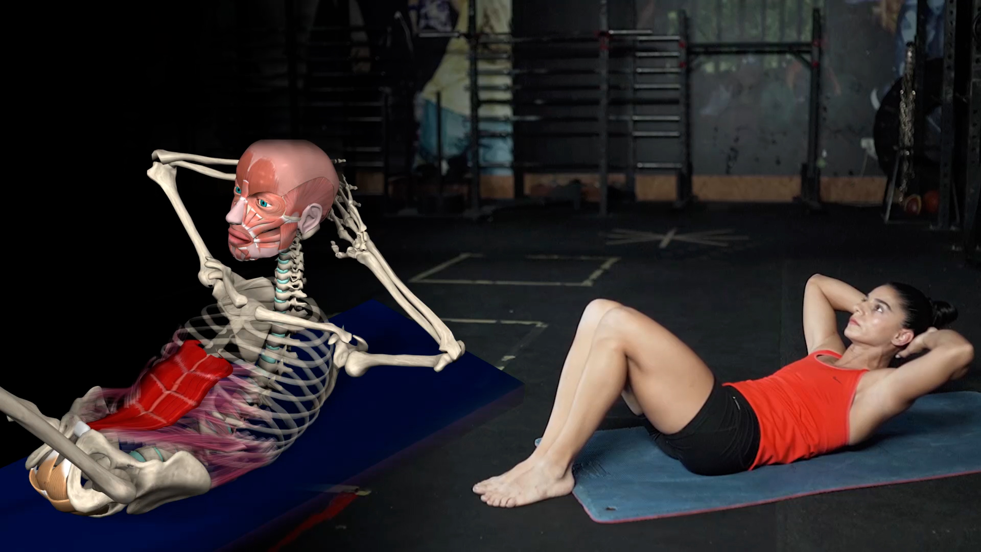 УпражненияУпражнение направлено на статическую работу мышц пресса (прямая мышца живота, наружная косая и внутренняя косая).