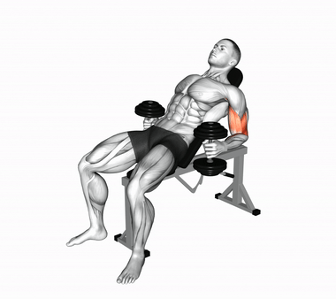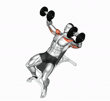 УпражненияЖим гантелей лежа на скамье с наклоном вверх
