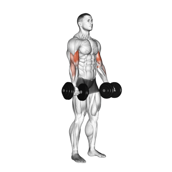 Упражнение в основном задействует двуглавую мышцу плеча, но также нагрузку получают плечелучевая и плечевая мышца, которые прилегают к бицепсу.