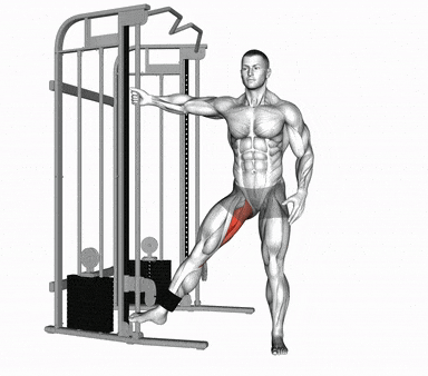 Упражнение направлено на развитие приводящих мышц. Основное движение - приведение бедра.