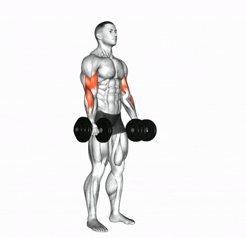 - Начните подъём гантелей до полного сгибания в локтях