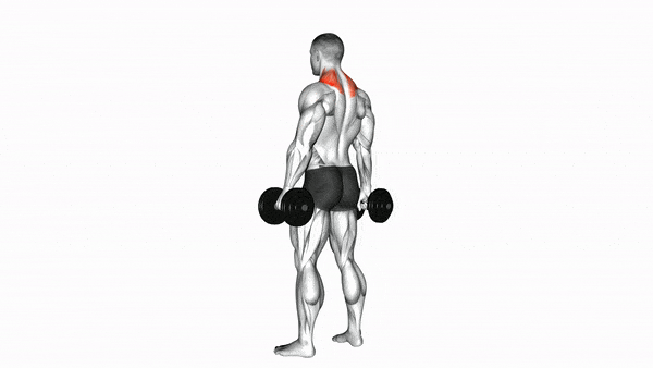 - На выдохе поднимите штангу, поднимая плечи как можно выше по направлению к ушам. Это движение похоже на “пожимание плечами”.