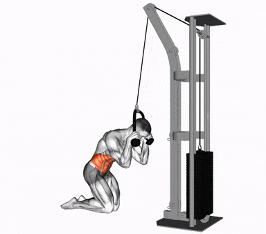 - При неподвижных бедрах сгибайте туловище, сокращая мышцы пресса так, чтобы локти двигались к середине бедер.