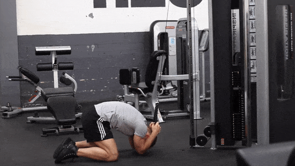- Возьмитесь за трос ладонями внутрь и опускайте трос, пока руки не окажутся рядом с лицом.